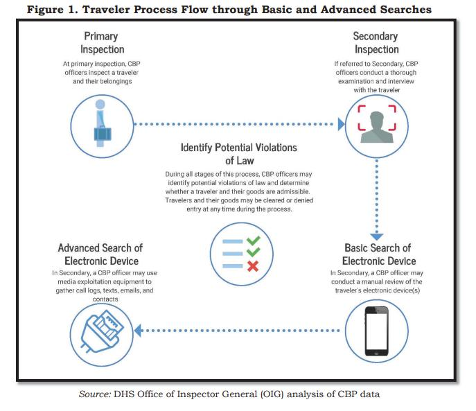 在二次检查中,CBP 可能对电子设备进行搜查或扣押。官员有权访问设备中的特定文件、要求提供设备密码、查看设备存储及关联的信息,或是复制硬盘内容。