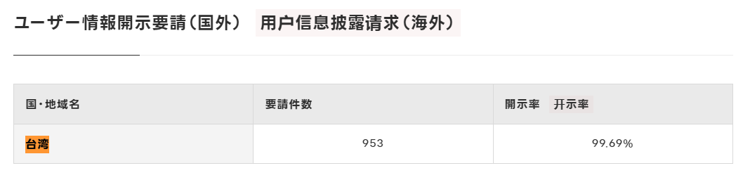LINEヤフー株式会社发布的《2025年上半年透明度报告》公开了LINE和Yahoo! JAPAN在半年内收到了的来自各国或区域的执法机关要求调取用户数据的请求。在报告的“用户情报开示请求(国外)”部分,台湾是被单独列出的重要对象。报告显示,台湾向 LINE 提出了 953件请求。由于台湾无法直接向日本法院申请令状,这些请求往往通过日本警察厅进行转化,警察厅确认存在法律合理性后,会以“行政协作”或《国际搜查共助法》为理由要求LINE完成调阅。