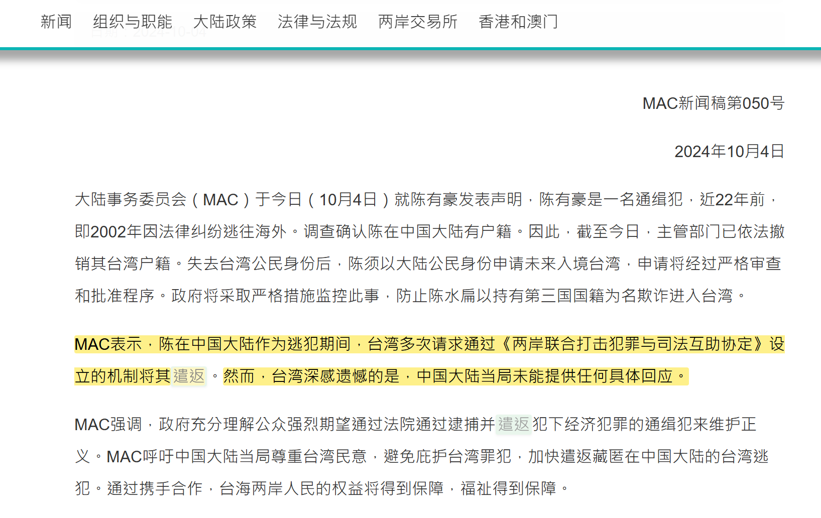 根据台湾法务部与大陆事务委员会数据,截至2024年,中国大陆已协助遣返超过500名台湾通缉犯。在2009年至2016年的高峰期,双方警方曾多次联手在东南亚破获大型跨境电信诈骗集团,并将嫌犯各自带回侦查、讯问 。